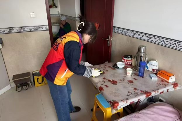 专业人员定期上门提供保洁服务(张俊英 摄)