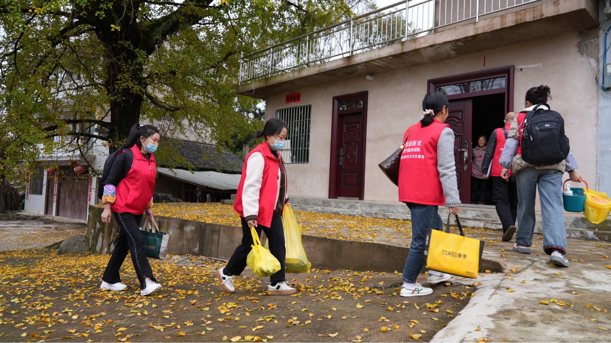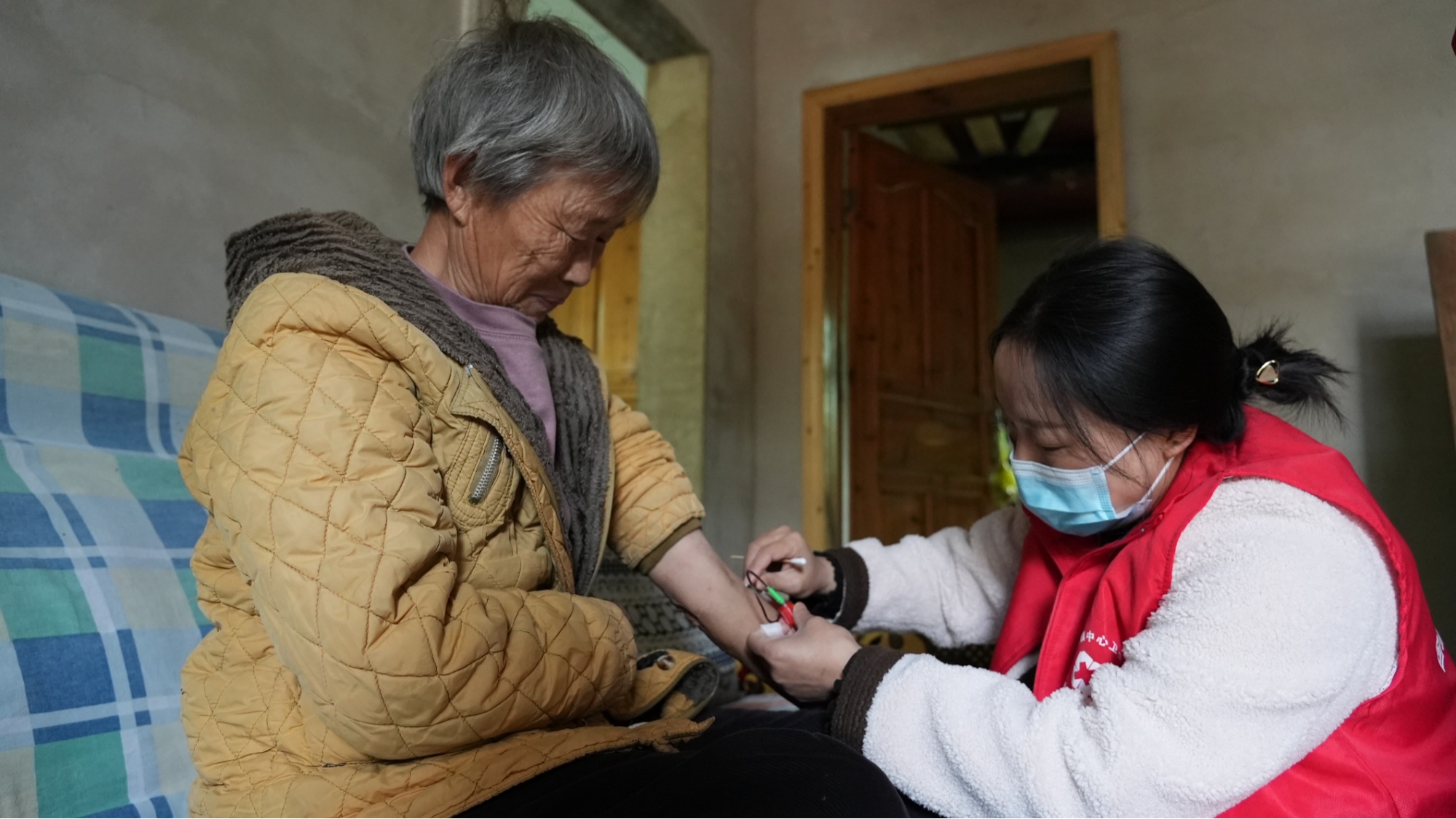 医生和护士手提体检设备,入户为老人体检(镇远县融媒体中心供图)